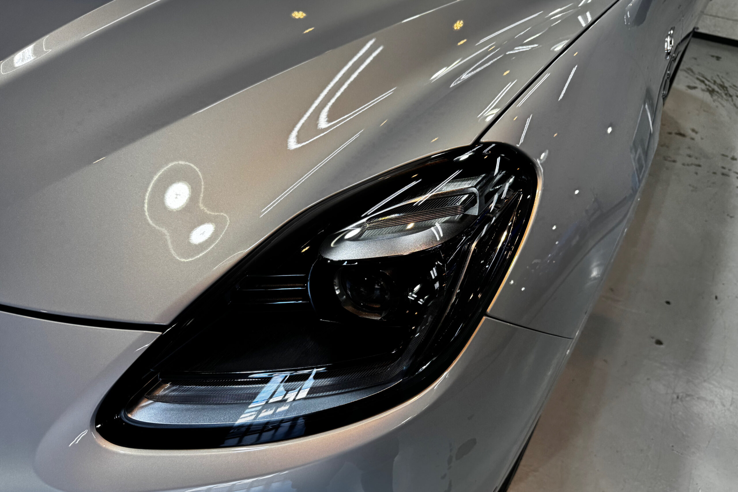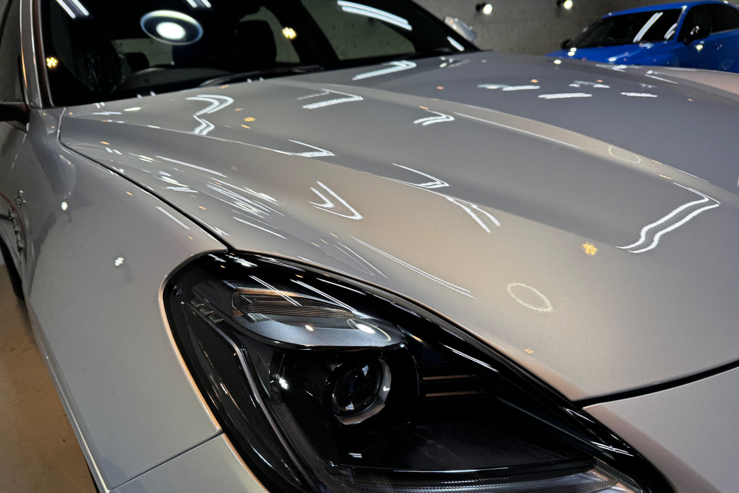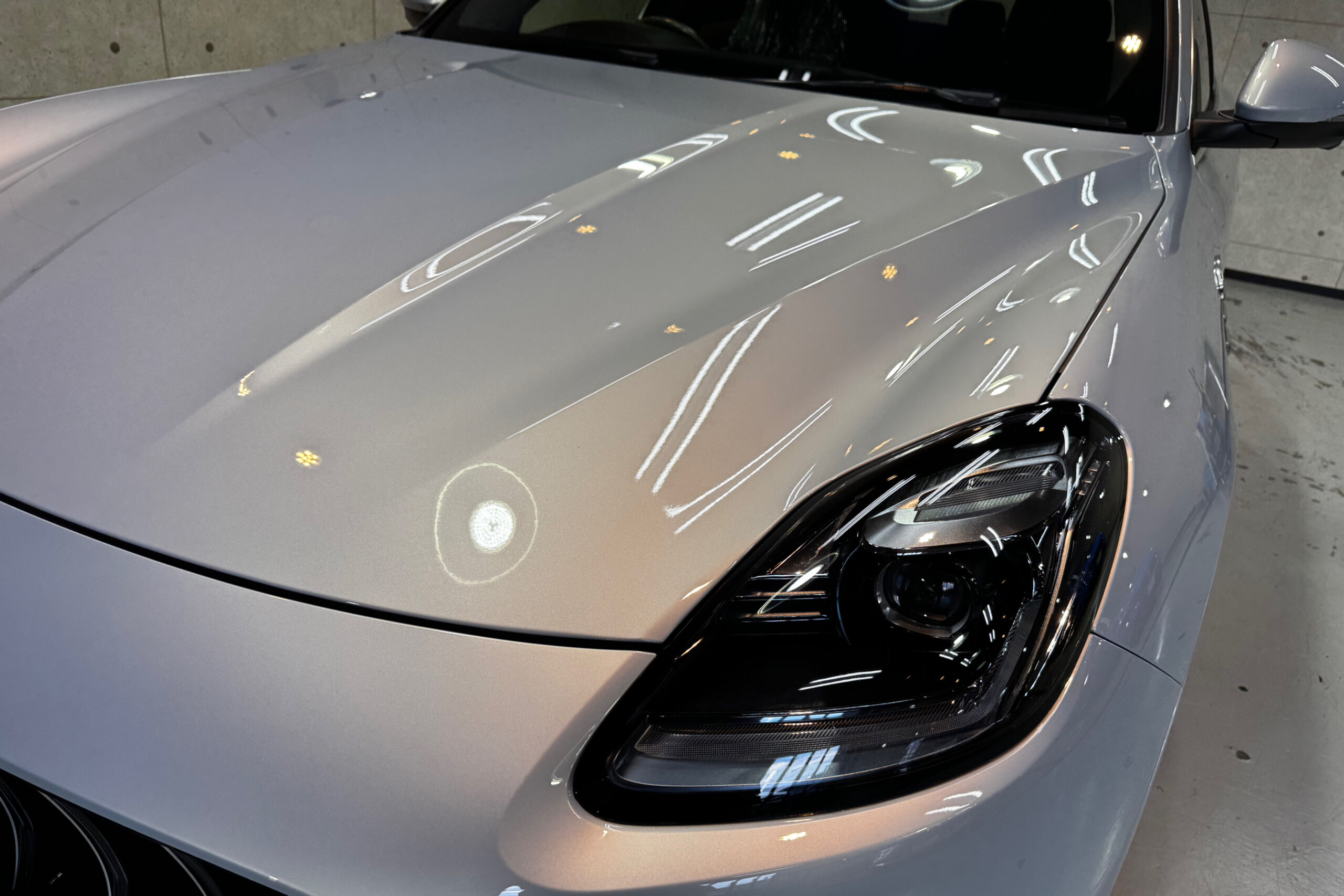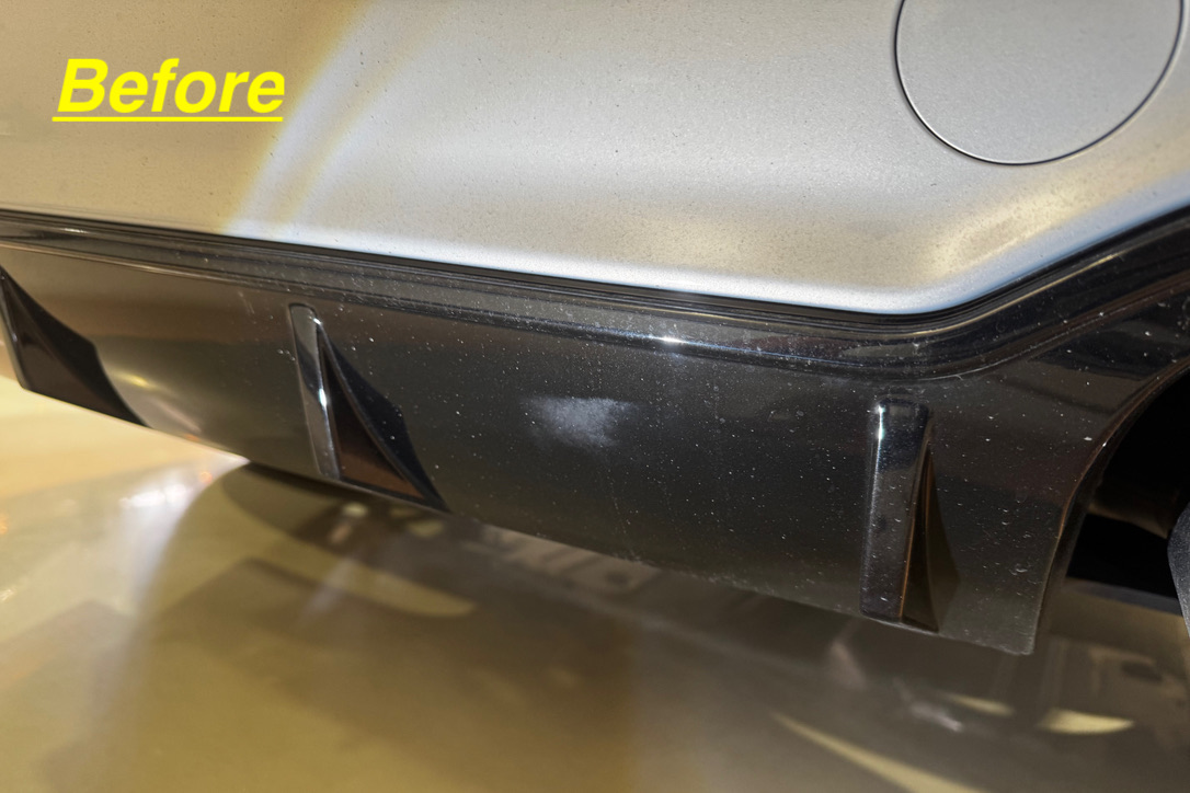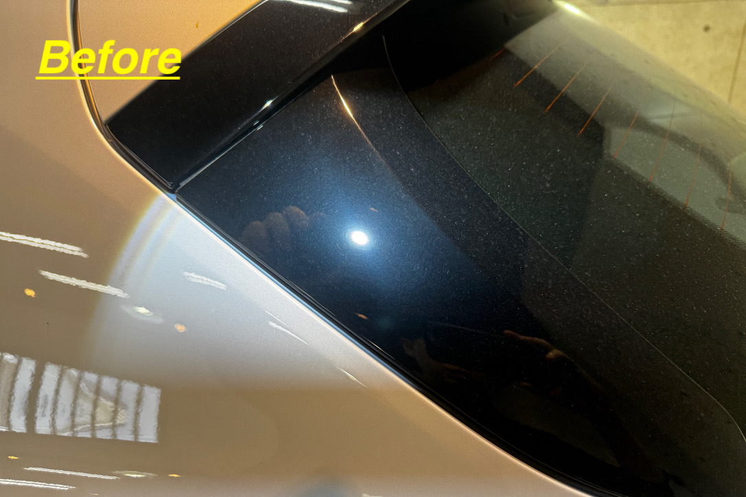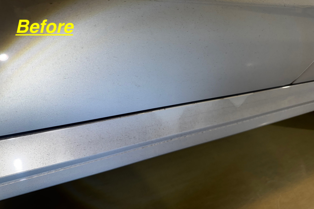 お預かりした車両は、ご納車前に研磨をしてあるようでしたが、磨きが粗いため磨き跡やコンパウンドが残っている状態でした。