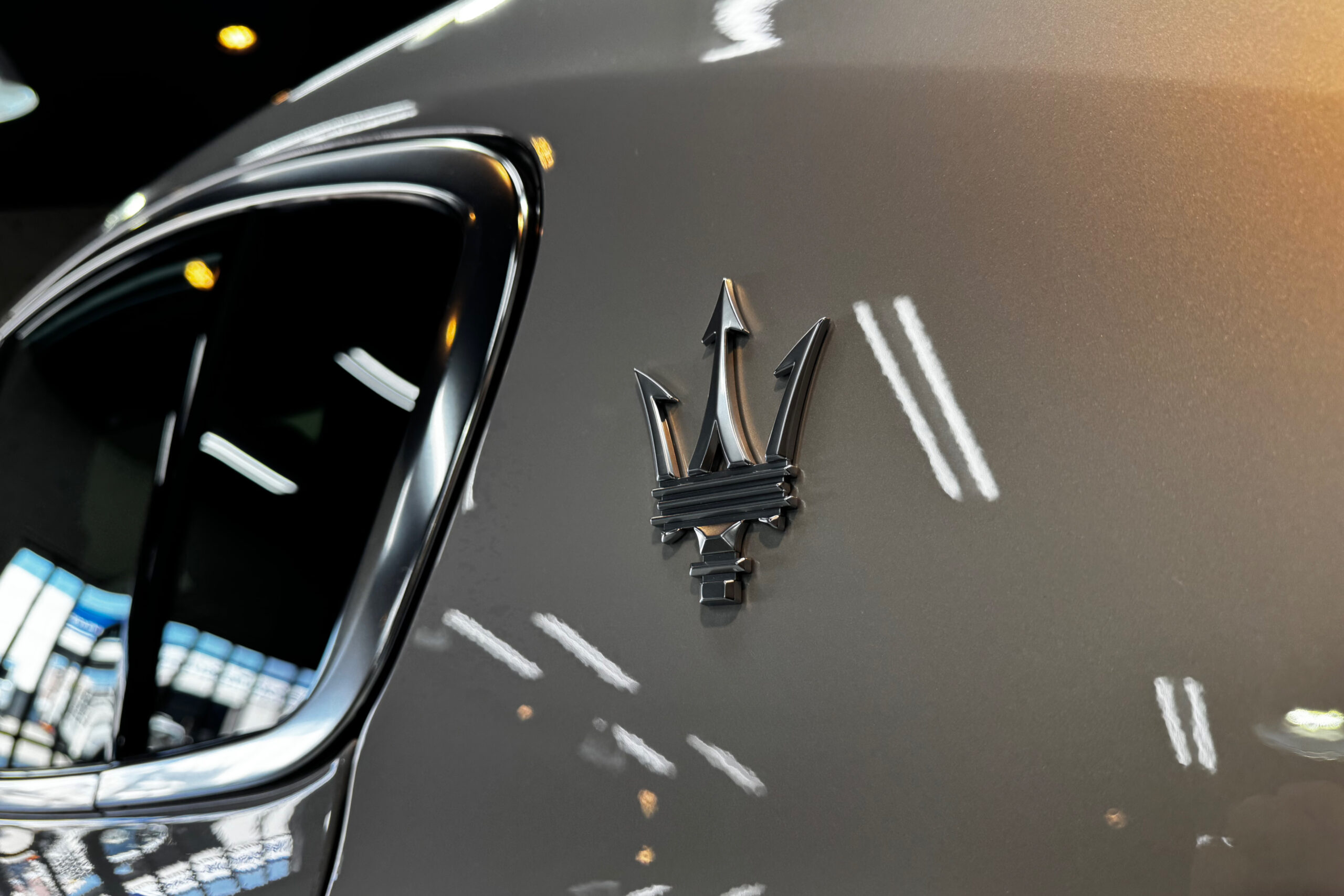 フロントグリルの中央のトライデントのエンブレムは、レースシーンで活躍した車両が最初に掲げ、マセラティの高い性能を象徴するものです。