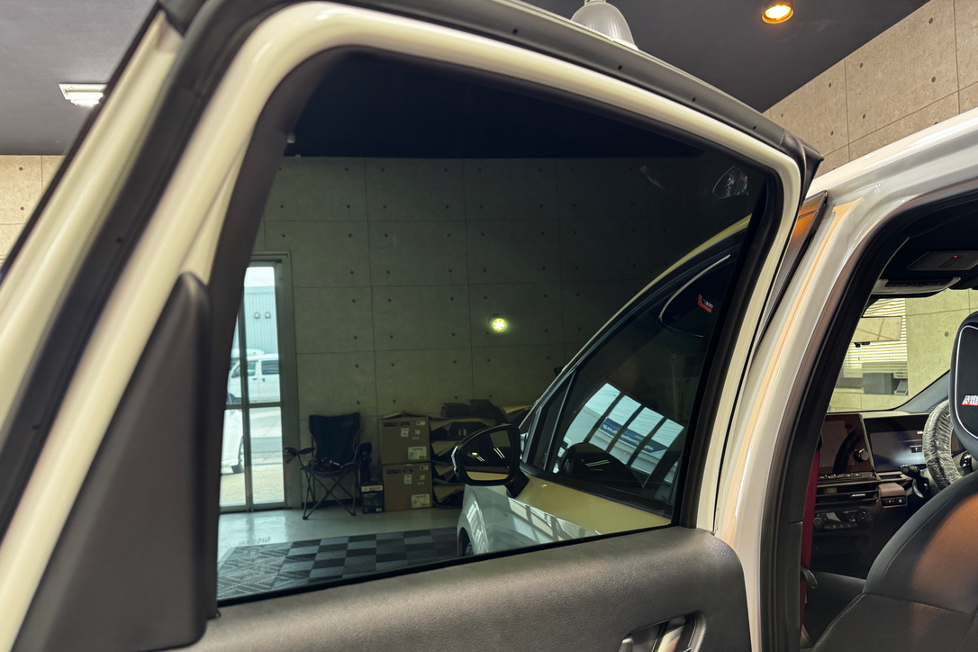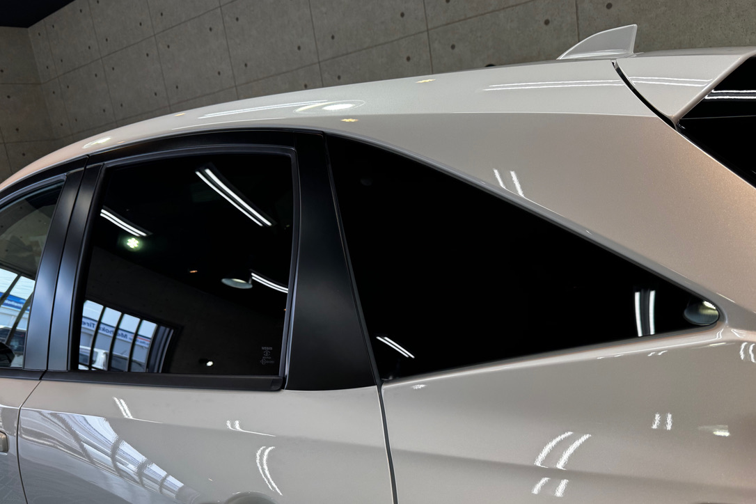 外からはスモークフィルムでグリーンの色味はわかりませんが、中からは高級感のある色味になります。
