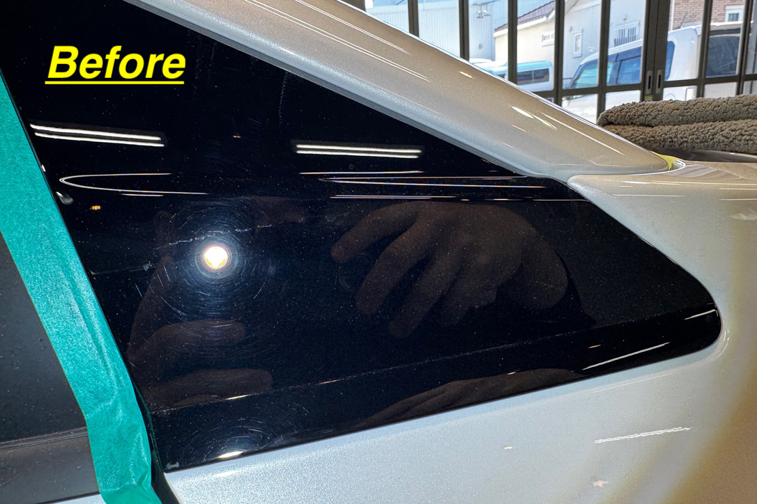 新車特有のくもりが強く、白ボケが強くスッキリしない状態でした。