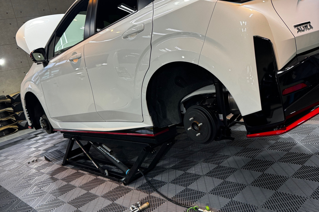 4輪リフトジャッキを使用して、安全に作業をおこないます。