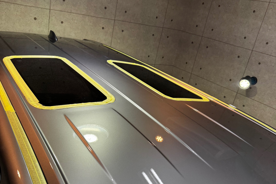 研磨によりゴムモールにダメージを与えないよう、マスキングで保護して隅々まで研磨します。