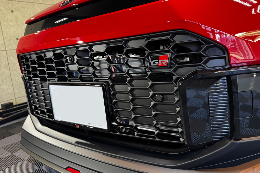 ハニカム形状のフロントグリルも隅々までコーティングします。