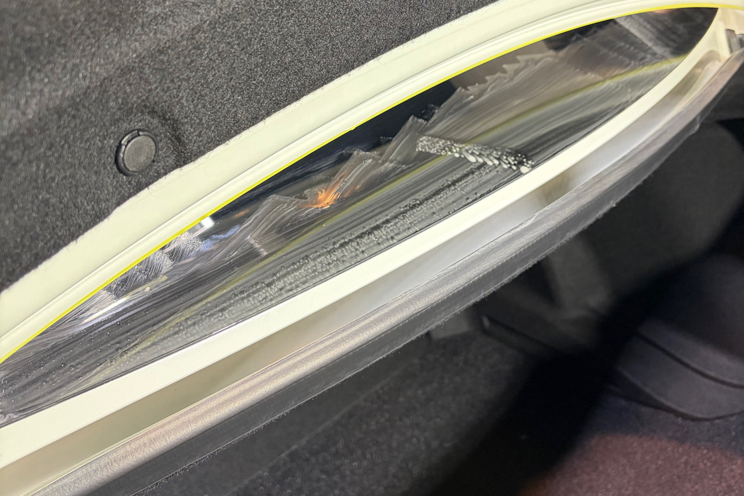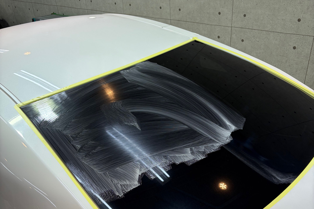 トランクで隠れてしまうガラス部分の丁寧に除去します。
