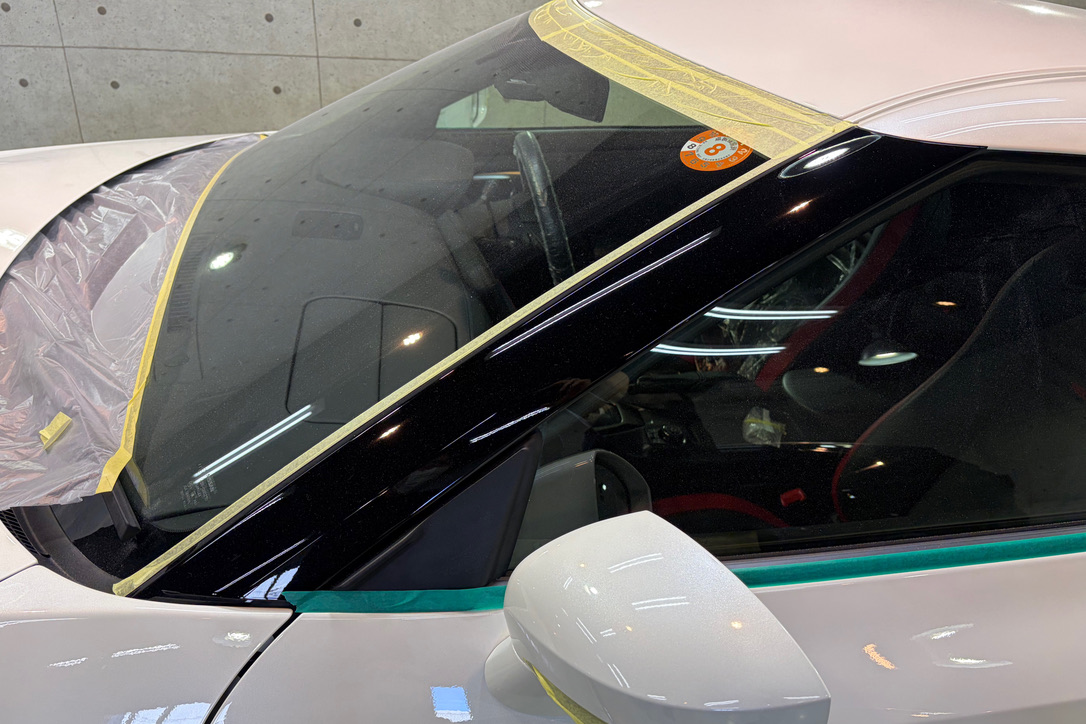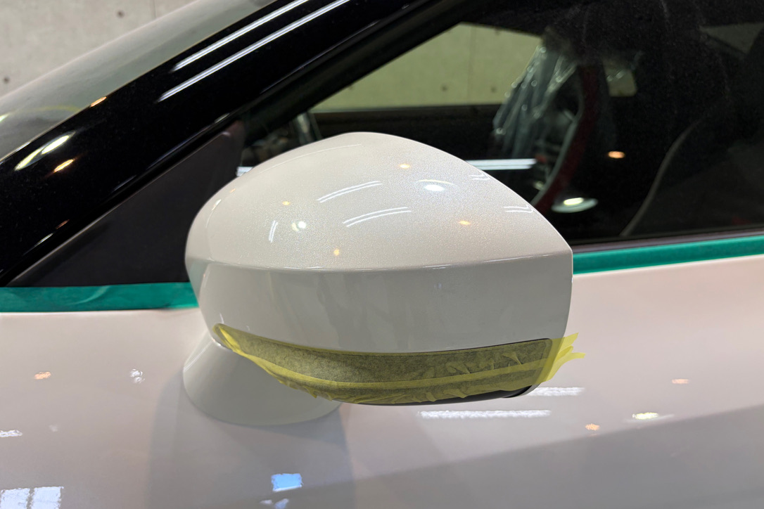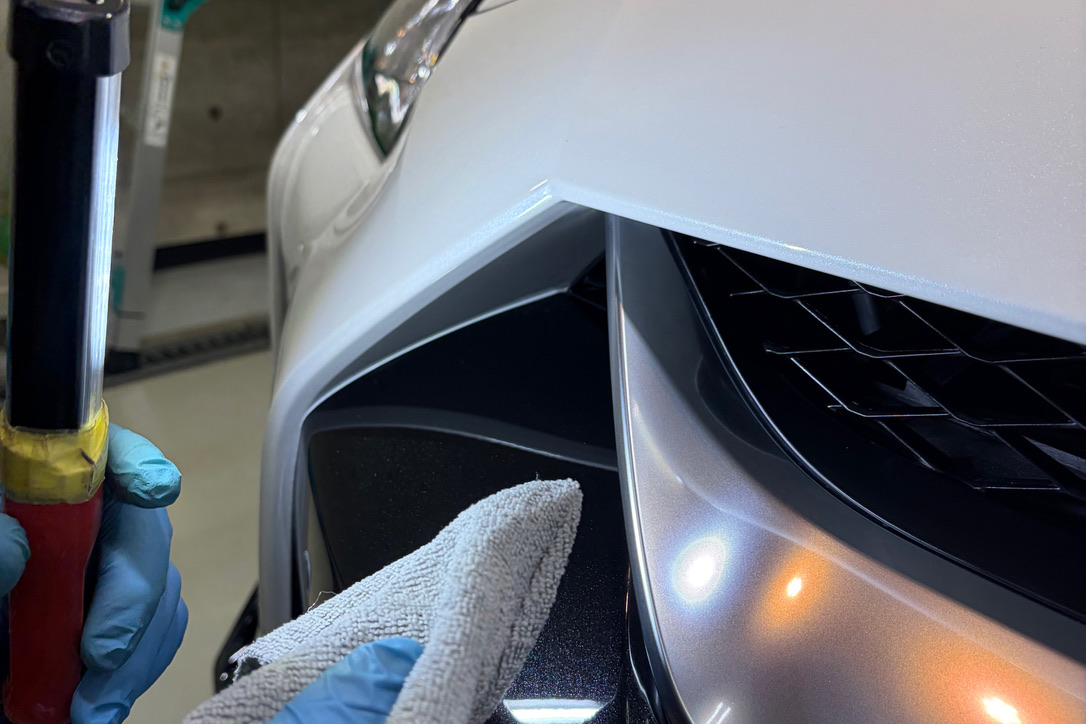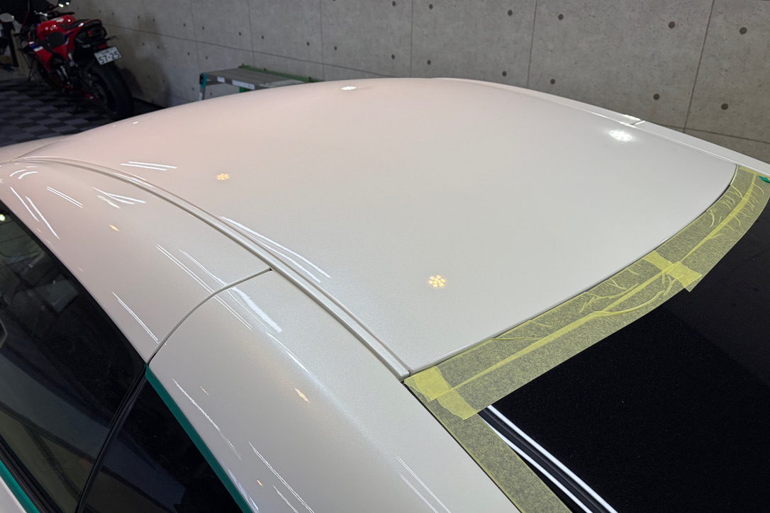 ボディにダメージを与えないよう、しっかりマスキングして施工します。