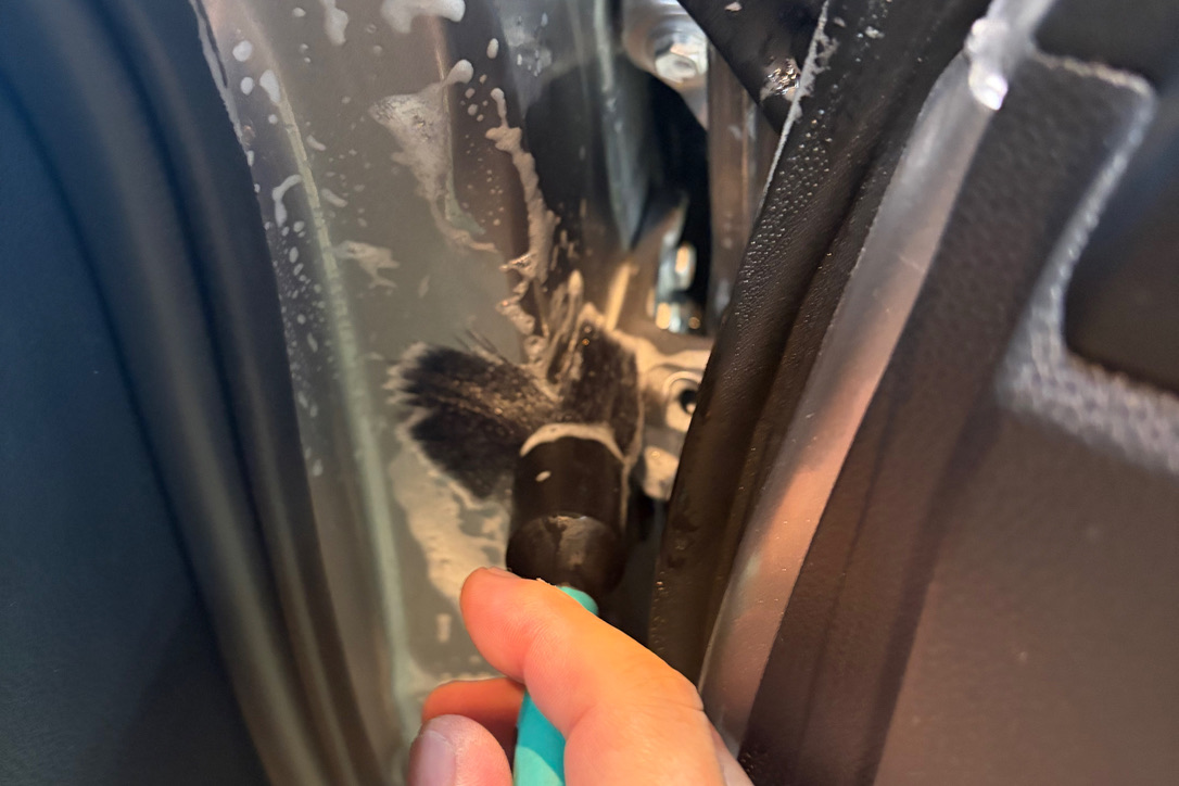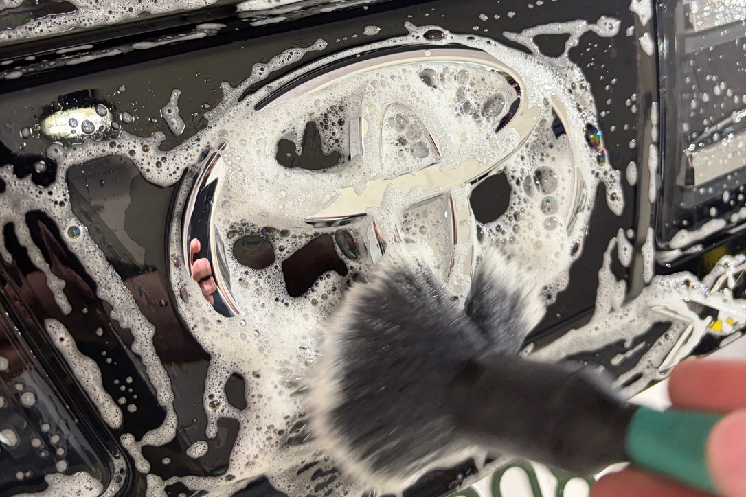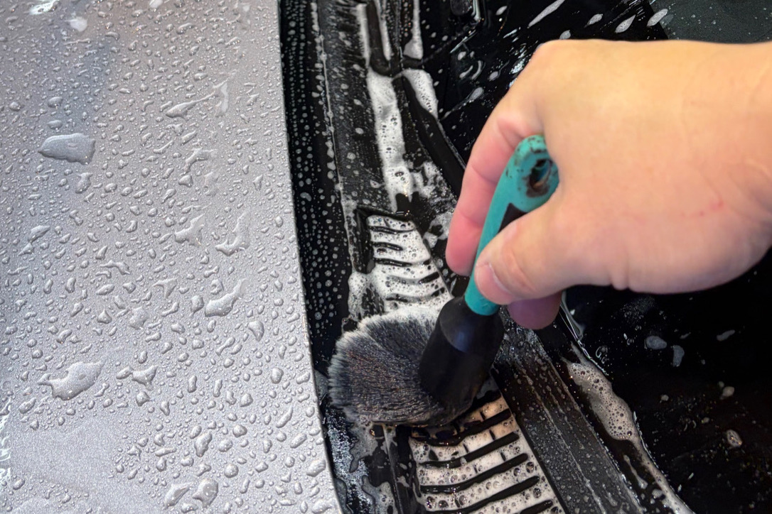 美しい姿にするため、コーティング前の徹底洗浄(雨染み除去、鉄粉除去、細部洗浄)をおこないます。