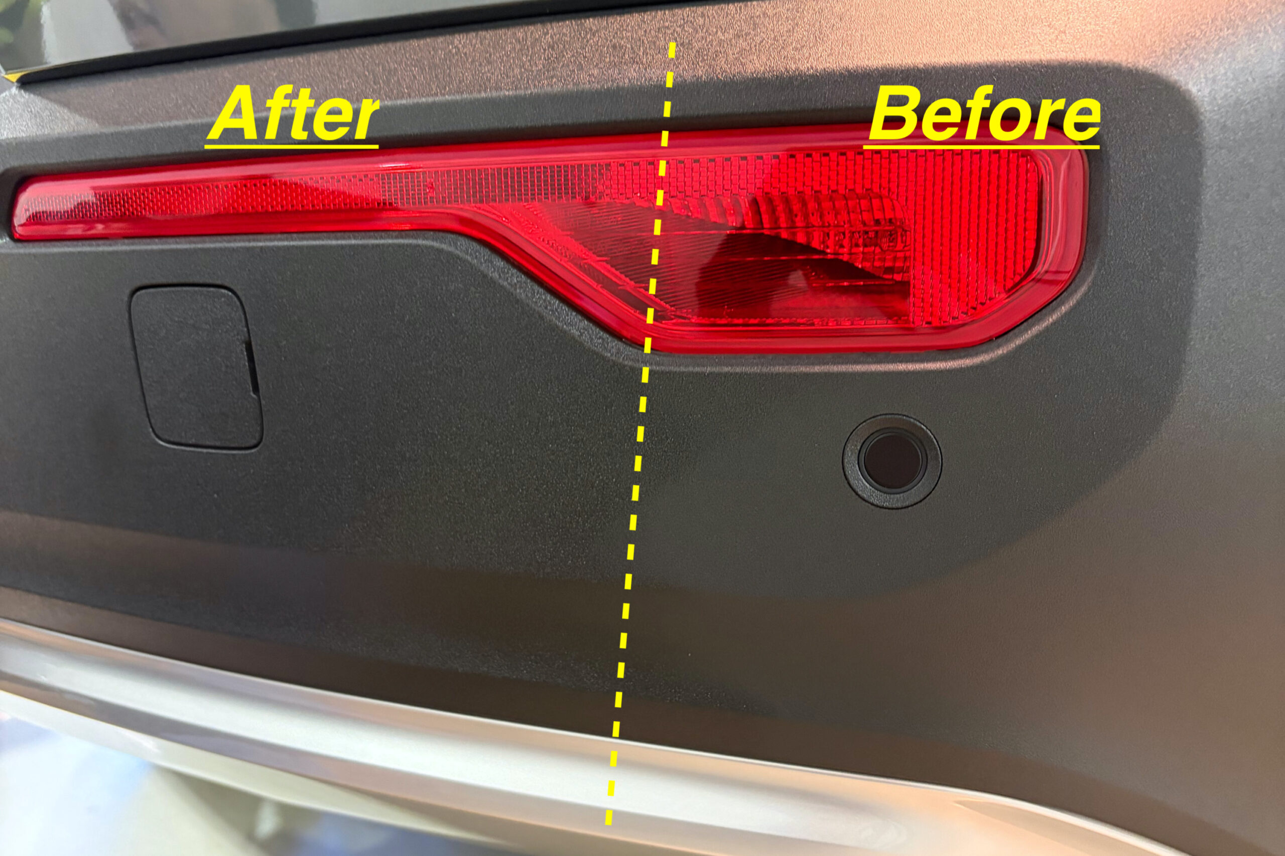 磨きあげると新車特有のくもりが除去され、クリア感が増してコーティングしてあるような艶になります。