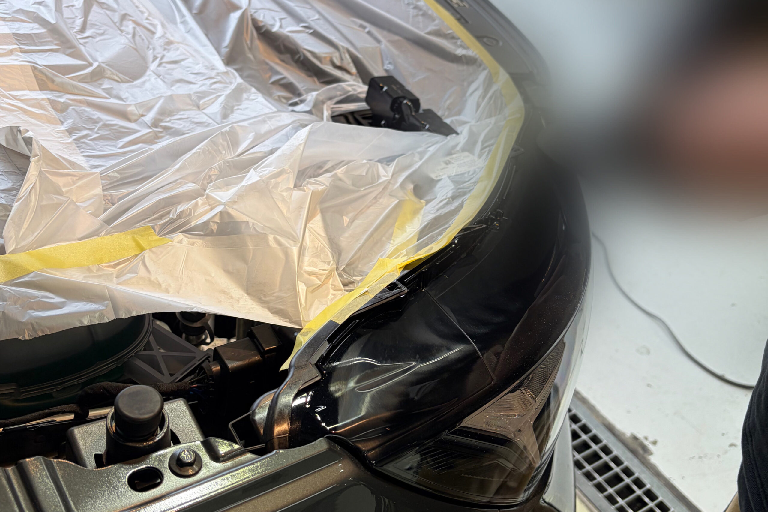 研磨時に余計なダメージをあたえることがないようしっかりマスキングして、隅々まで丁寧に磨きあげます。